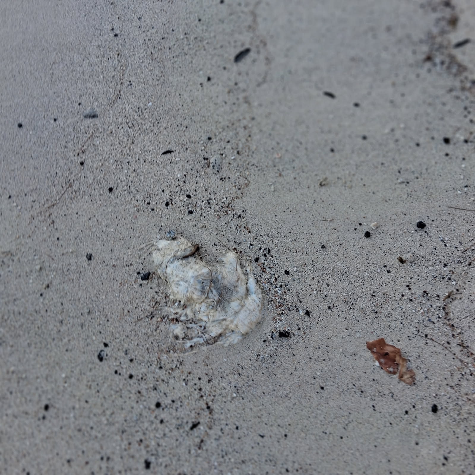Close-up view of a small piece of whale carcass on the sand in front of Caretakers Pond at Makalawena Beach, 2026, Hawaiʻi Island.