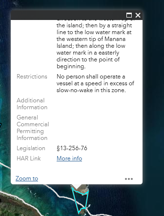 If you click on an ORMA you can scroll through the description of the limitations of the area and it will show the HAR section (the section of the rules). You can also click on the attribute table located in the bottom right corner for the same details.