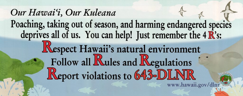 The Division of Forestry and Wildlife has a wide selection of educational posters developed in house and by our partners. These teaching tools are available to educators in Hawaiʻi at no cost. Posters are available at most DOFAW offices or by contacting the DOFAW Administrative office at (808) 587-0166.