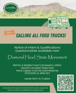 [OʻAHU] – Diamond Head State Monument will be closed on December 25, 2025, (Christmas Day) and January 1, 2026 (New Year's Day). Normal operations will resume on December 26, 2025, and January 2, 2026, respectively.