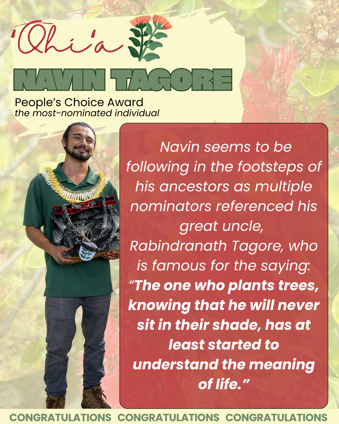 We invited the public to nominate those who uphold their community forest kuleana, and our Kaulunani Advisory Council and staff selected the awardees.