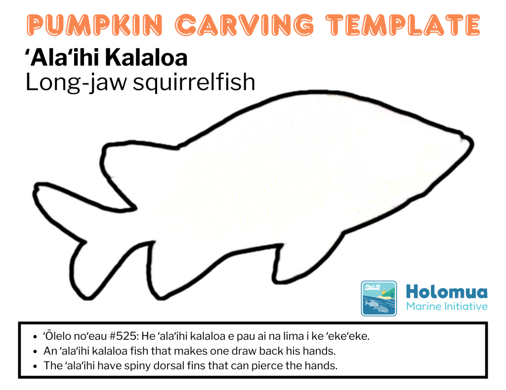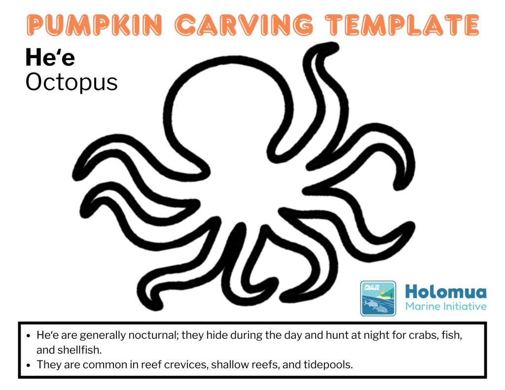 This Halloween, dive into the deep with our ocean-inspired pumpkin carving designs! Download our carving templates below and bring Hawaiʻi’s marine life 🐙🌊 to your Halloween. Each design features a native species you might find in local waters, along with fun facts to learn as you carve. Tape your stencil to the pumpkin, poke along the lines, and carve carefully with adult help.