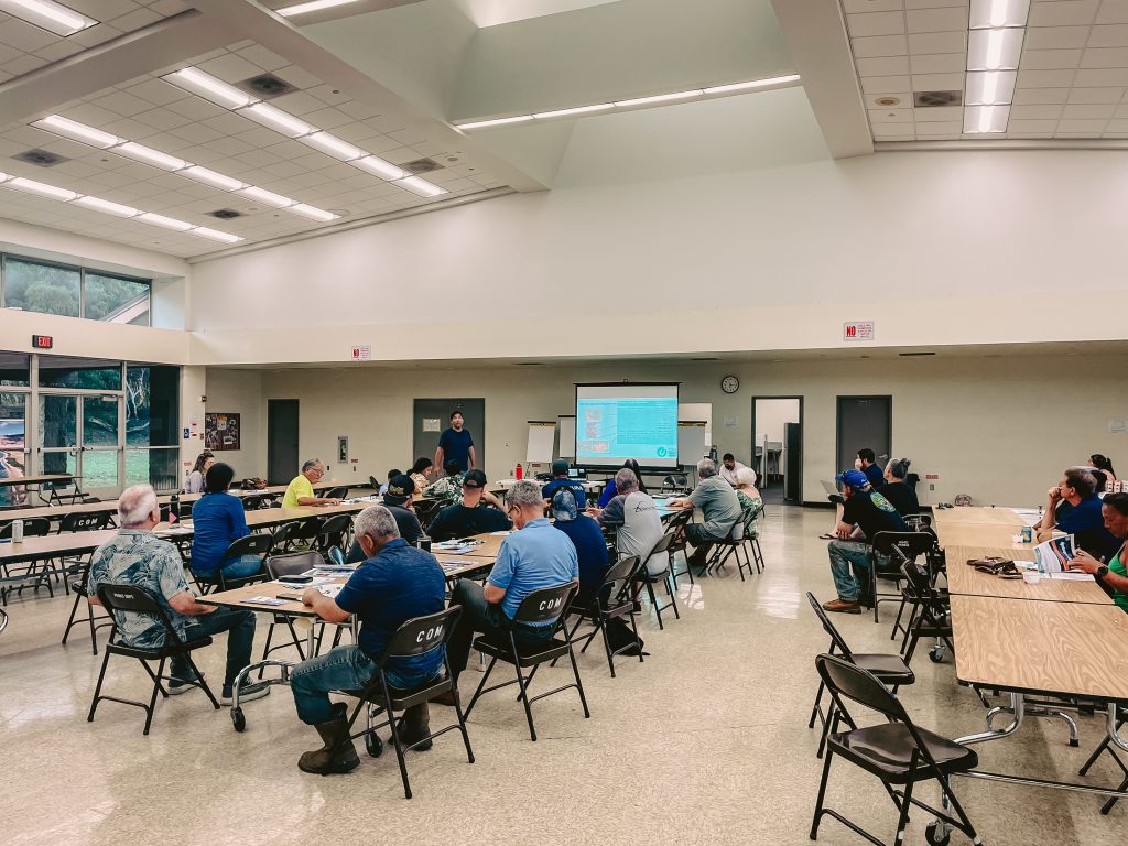 On September 25, 2024, DAR Holomua Marine Initiative hosted their second Information Exchange at Lahaina Intermediate School. They were joined by community members who fish for recreation, subsistence, and cultural purposes, as well as a few non-fishers with personal connections to Maui waters. After the Maui Navigation Team presented the draft management proposal, the floor was turned over to the community members in attendance so they could share their thoughts and feedback, helping to strengthen this unique, community-driven approach to nearshore marine resource management.