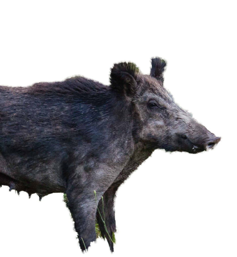 The Eurasian boar was introduced to Hawai‘i by British Captain Vancouver in 1792 along with cattle, horses, goats, and sheep. While Hawaiians reared small domesticated Polynesian pigs in captivity, the Eurasian boar quickly began to spread within Hawai‘i’s forests. The Eurasian boar has been identified as a pest across the world where it has been introduced. In wet forests, the wallows and hollowed eaten logs create mosquito habitat, which encourages the spread of avian malaria–a direct that to Hawai‘i’s birds. Hunting is encouraged as a tool to reduce Eurasian boar populations.